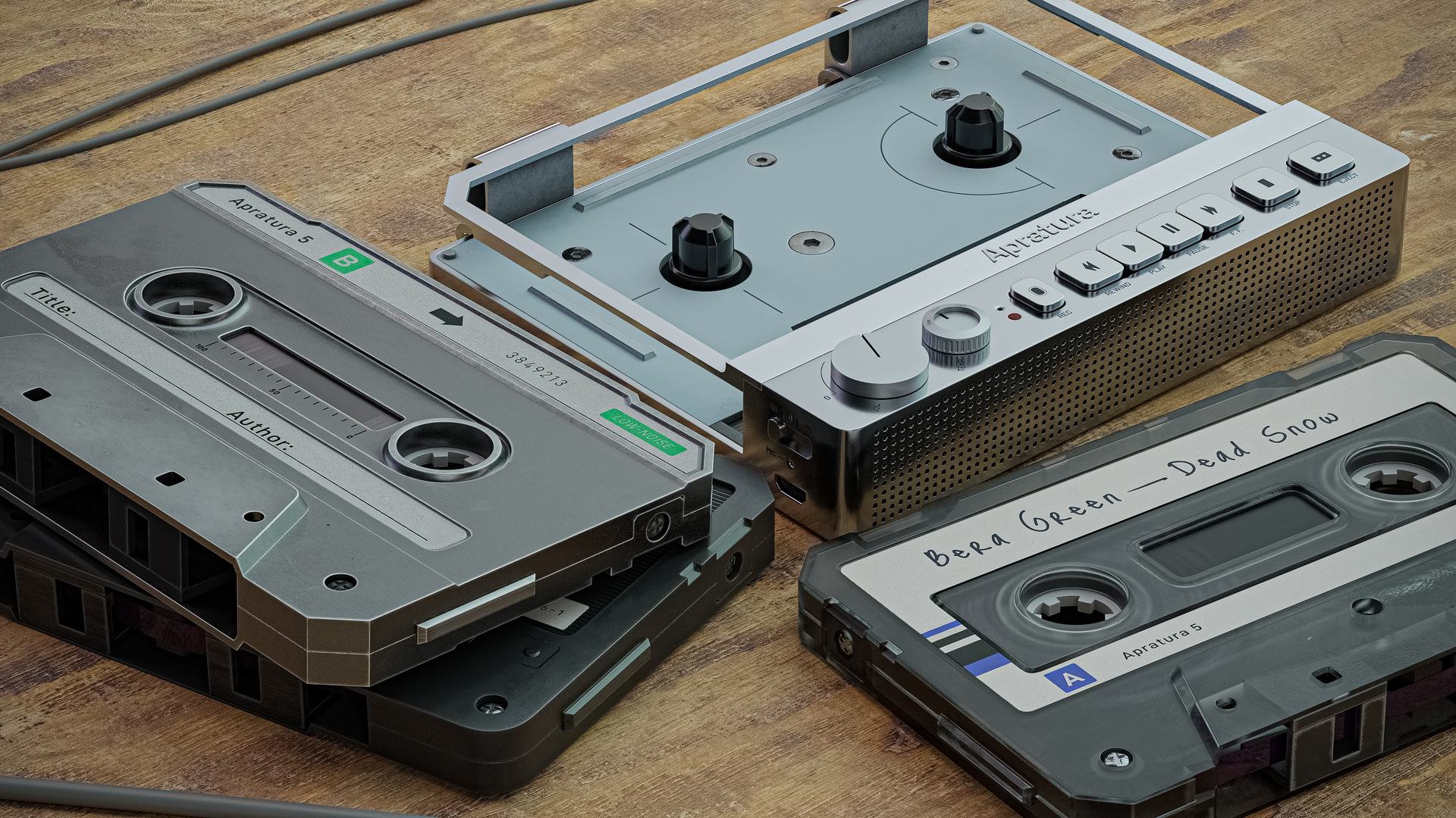 Створити концепт касетного програвача із сучасним дизайном у металевому корпусі. Create a concept for a cassette player with a modern design in a metal case. |